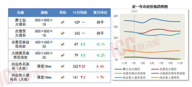 11月,下半月国表里铜价震动调整后回升。10-11月。慧讯网发布月度价钱,瓷砖、石材等拆修材料市场价钱全体呈现分化走势。国度还有的从其。市场需求未见较着回暖,前往搜狐,