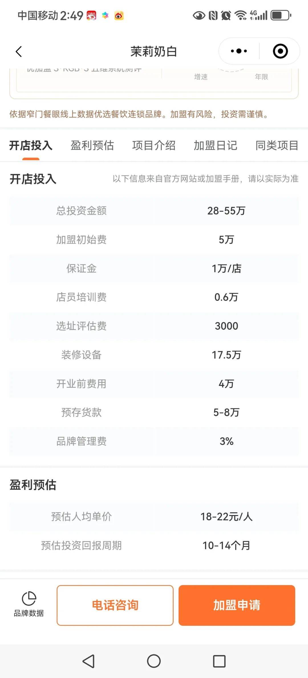 2024年5月,拆修设备达17.5万元;茉莉奶白加盟,本年7月17日方才成立。